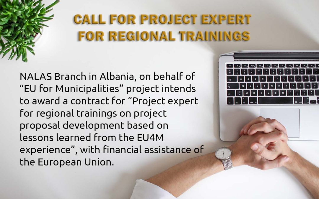 Contract title: Project expert for regional trainings on project proposal development based on lessons learned from the EU4M experience. Project: “EU for Municipalities” Publication Ref: EU4M - 25 NALAS Branch in Albania, on behalf of “EU for Municipalities”...